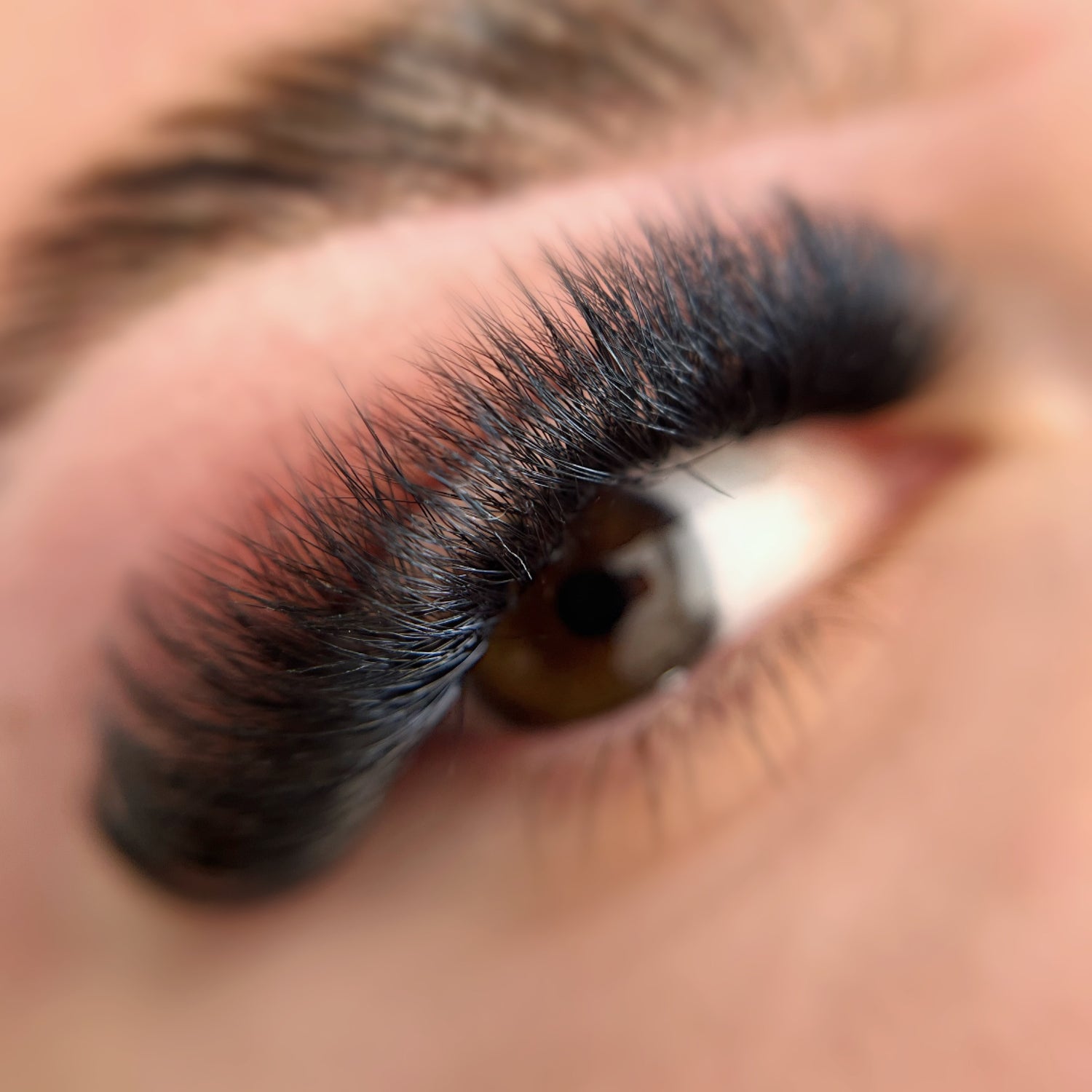7D - 10D premade fans are applied to each individual natural lash creating a dramatic volume look.
