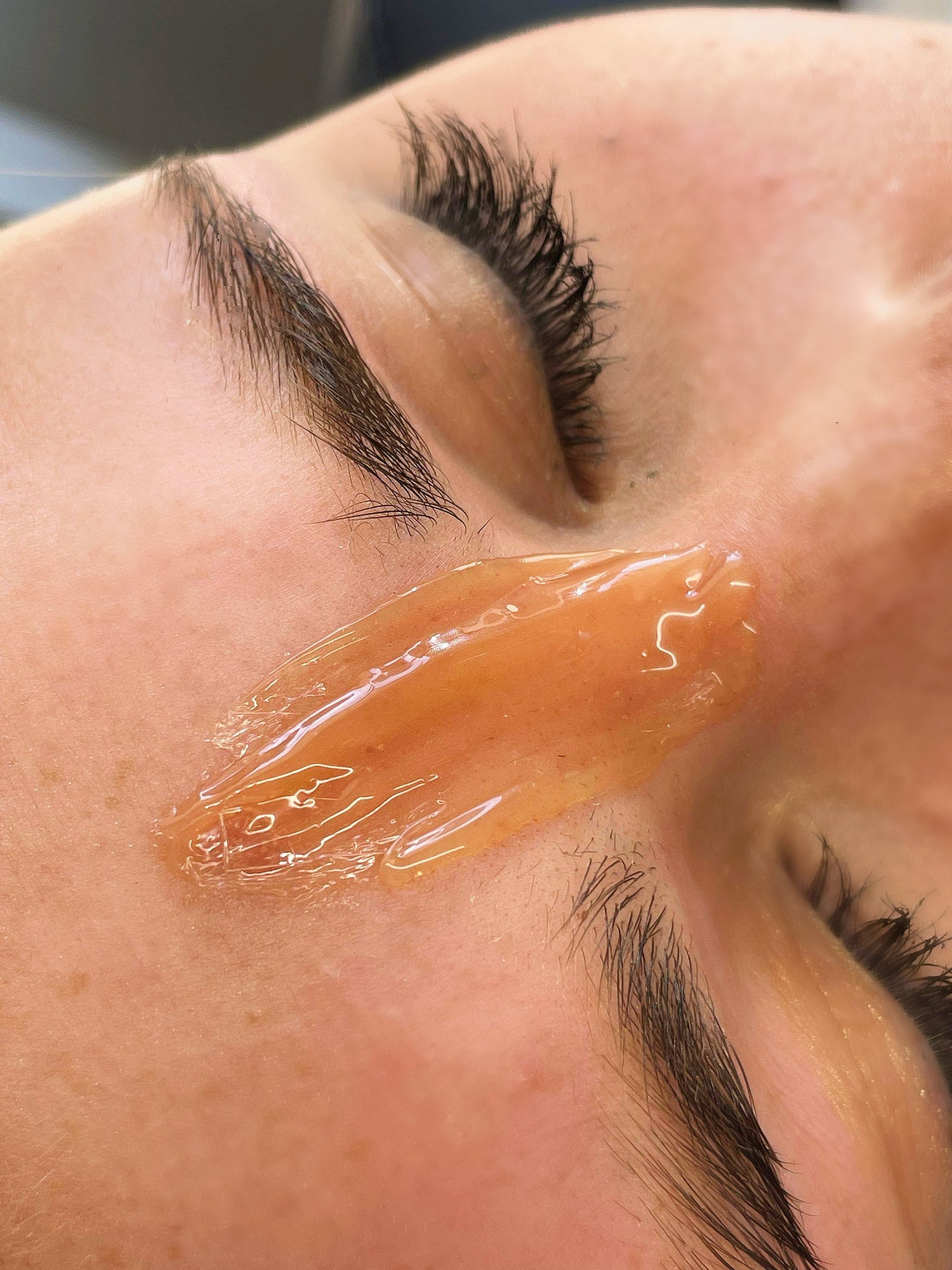 Wax and tweezing is included to create your desired shape. Followed by a custom dye matched to your skin tone, creating fuller and more defined brows. Soothing gel is then massaged into the brows.