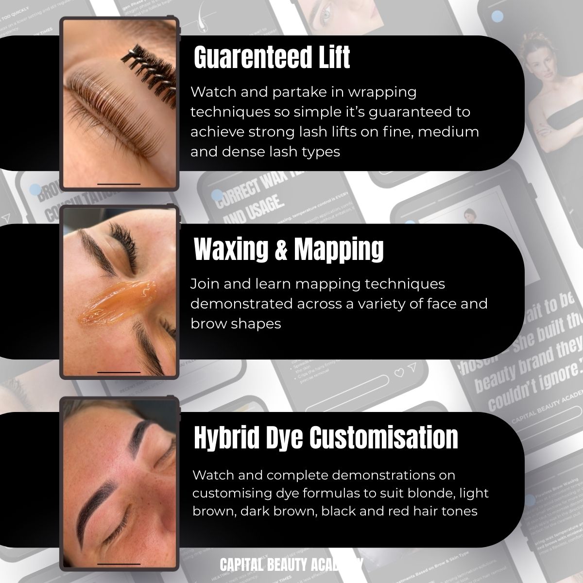 ✔ Be certified in Lash Lift + Brow Lamination + Brow Sculpture + Hybrid Dye