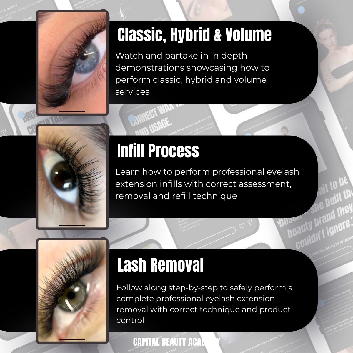 - Master Classic, Hybrid & Volume Pre-Made Lash Extensions